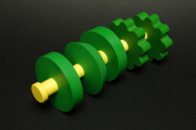 An imperfect geometry artifact consisting of five discs of varying form and location mounted on a shaft and demonstrating the differences between Circularity, Cylindricity, Circular Runout and Total Runout. A copy of the SmartGD&T Personal Trainer & Exercise Manual is highly recommended as a source for exercises.
